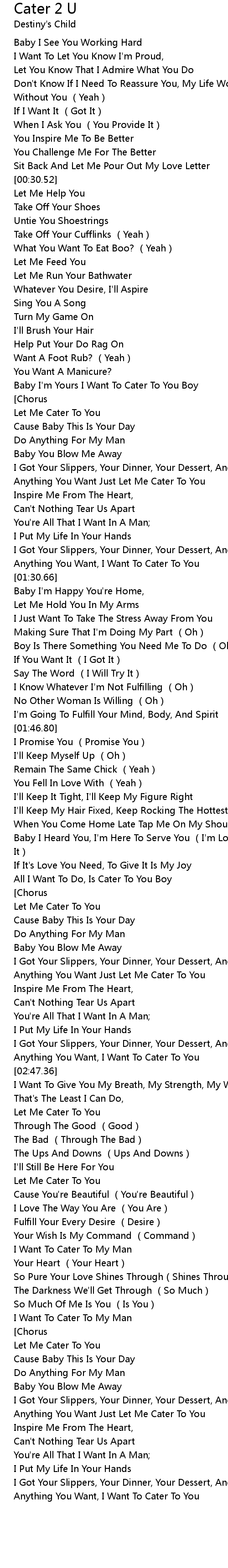 | [01:14.00] | Anything You Want Just Let Me Cater To You |
