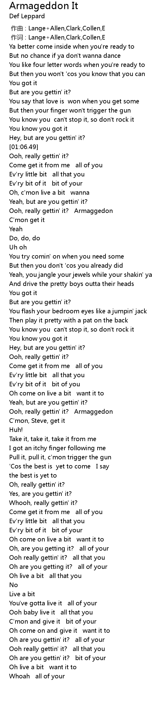 | [00:00.00] | 作曲 : Lange+Allen,Clark,Collen,E |