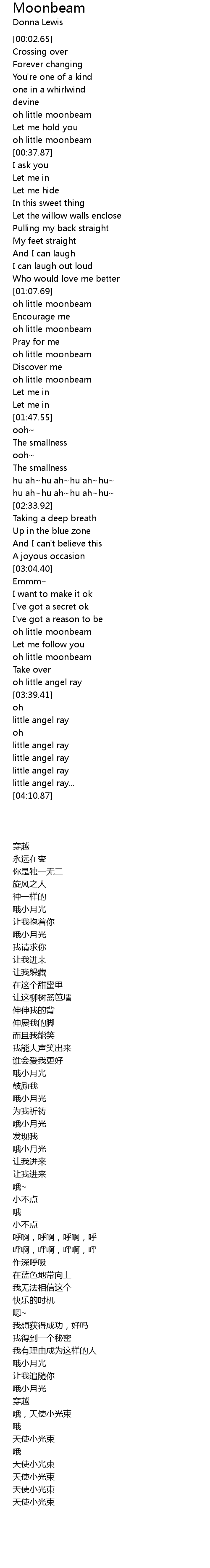 | [03:35.02] | 哦,天使小光束 |