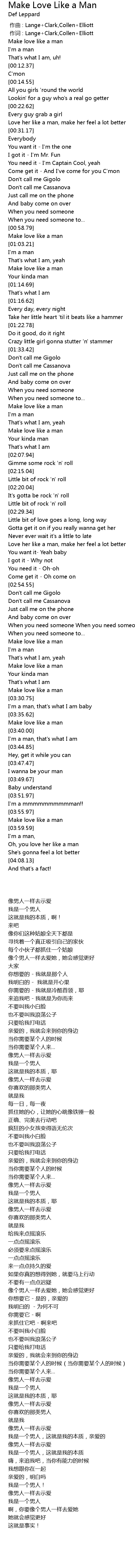 | [00:00.00] | 作曲 : Lange+Clark,Collen+Elliott |