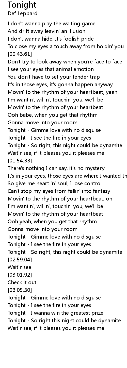 [01:31.84] Tonight - Gimme love with no disguise