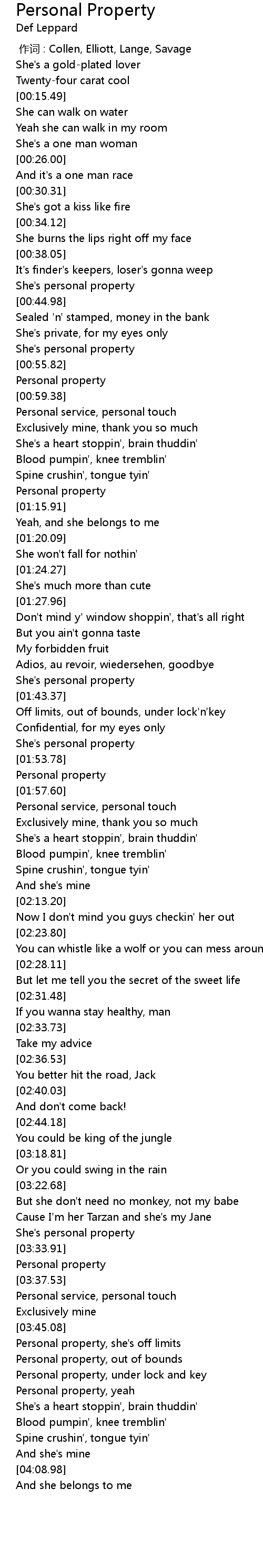 | [01:50.98] | She' s personal property |