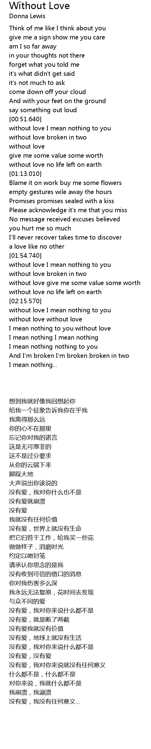 without love I mean nothing to you |