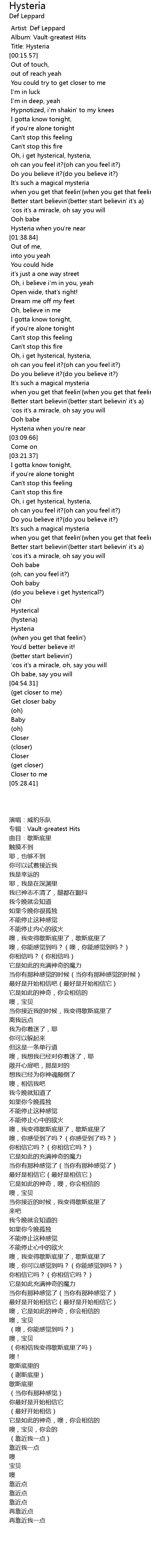 Title: Hysteria |