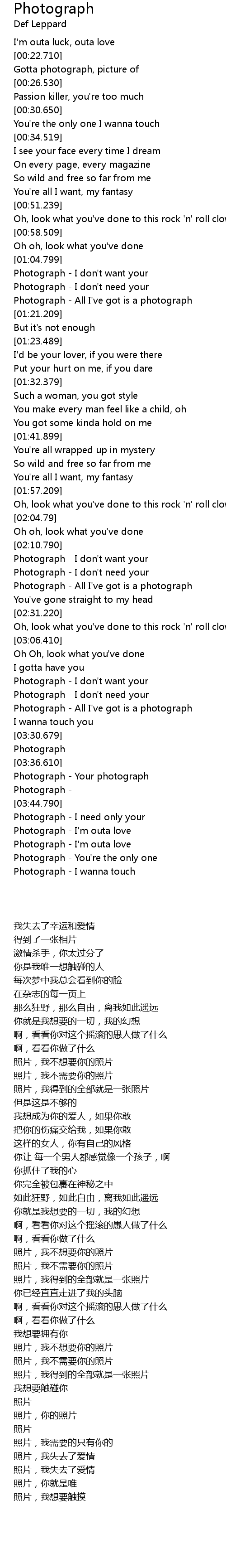 | [02:20.590] | Photograph - All I've got is a photograph |
