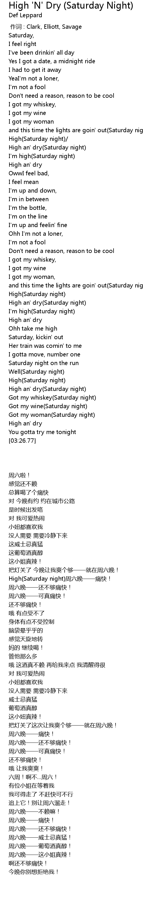| [00:51.93] | High(Saturday night)周六晚——痛快! |