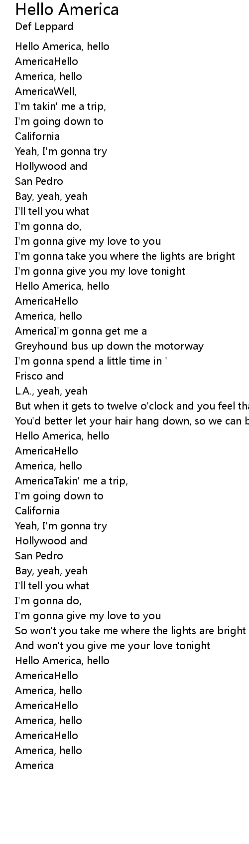 Hello America, hello |