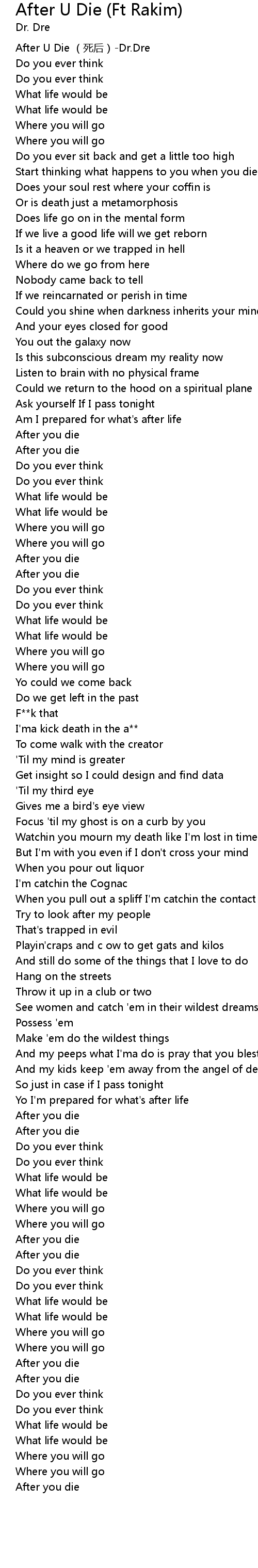 | [00:00.00] | After U Die (死后)-Dr.Dre |