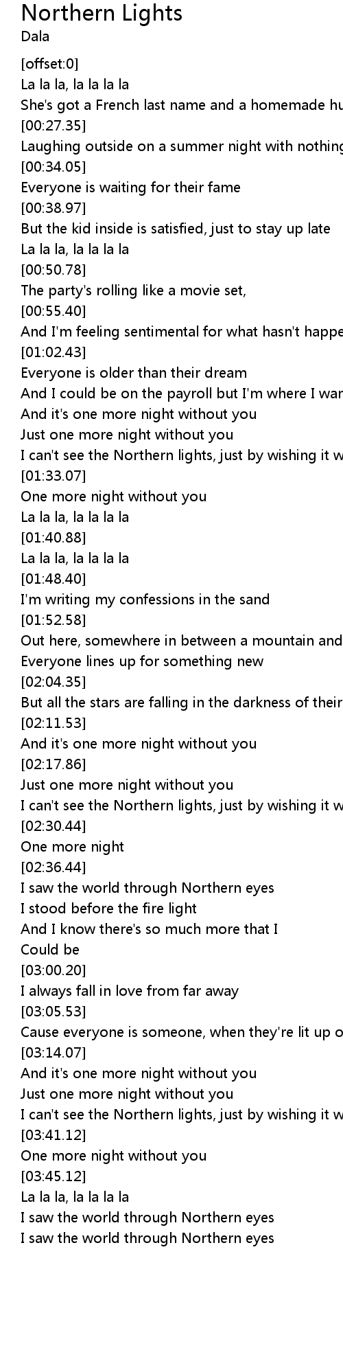 I can't see the Northern lights, just by wishing it were true |