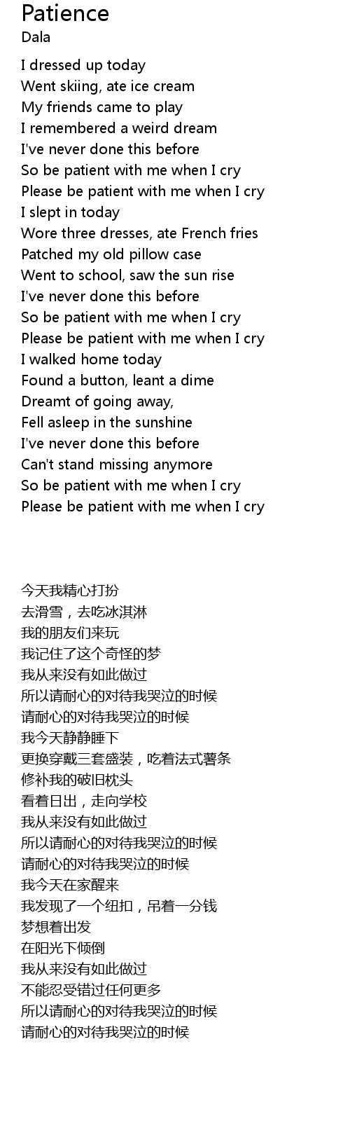 Please be patient with me when I cry |