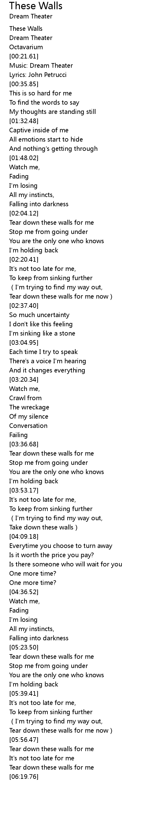 | [06:15.97] | Tear down these walls for me |