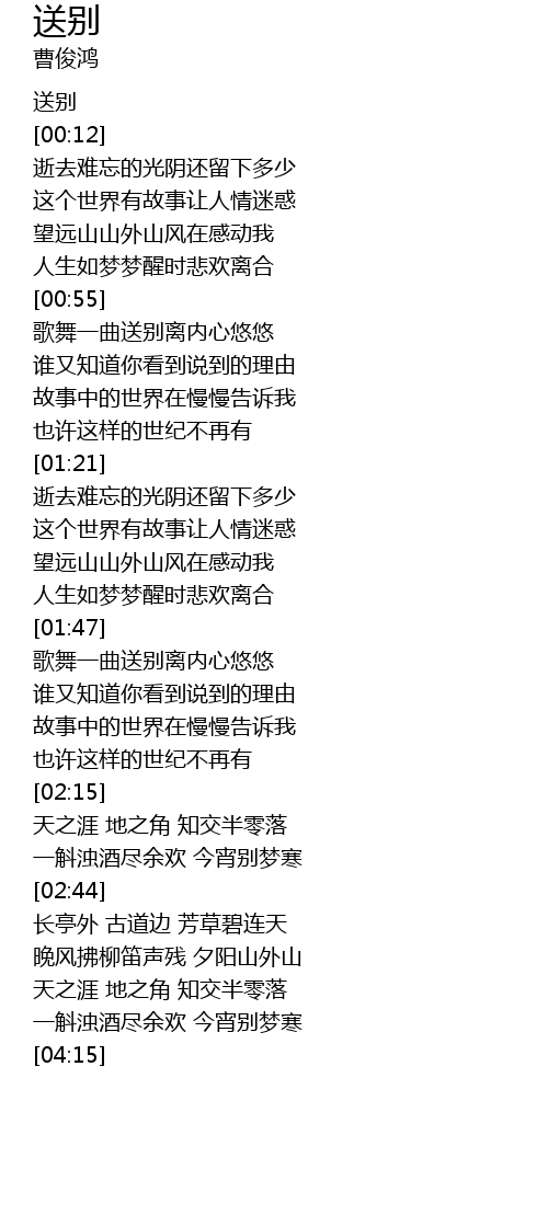 | [00:56] | 歌舞一曲送别离内心悠悠 |
