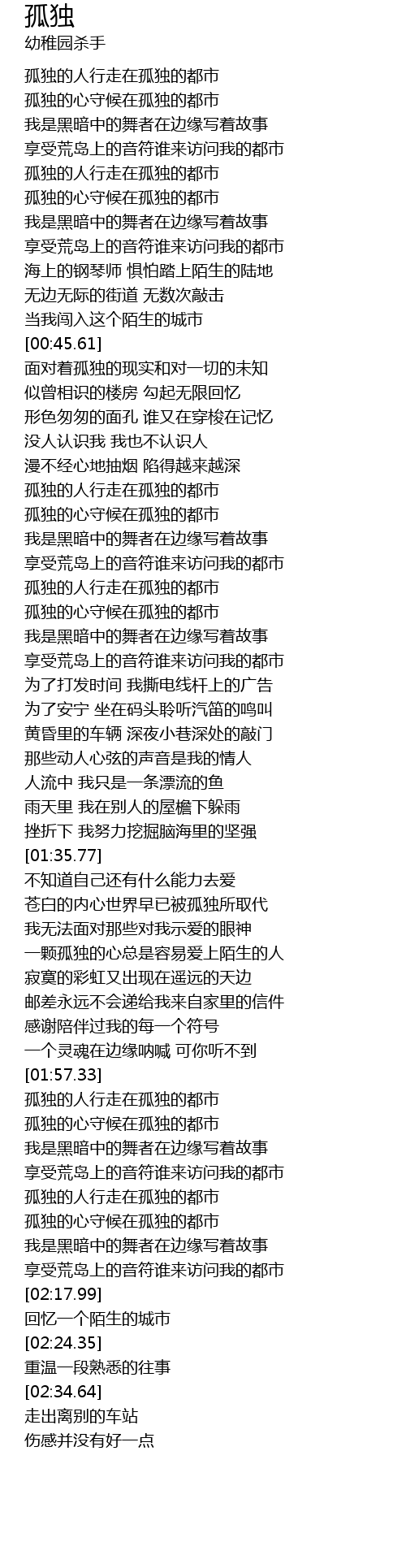 | [01:58.08] | 孤独的人行走在孤独的都市 |