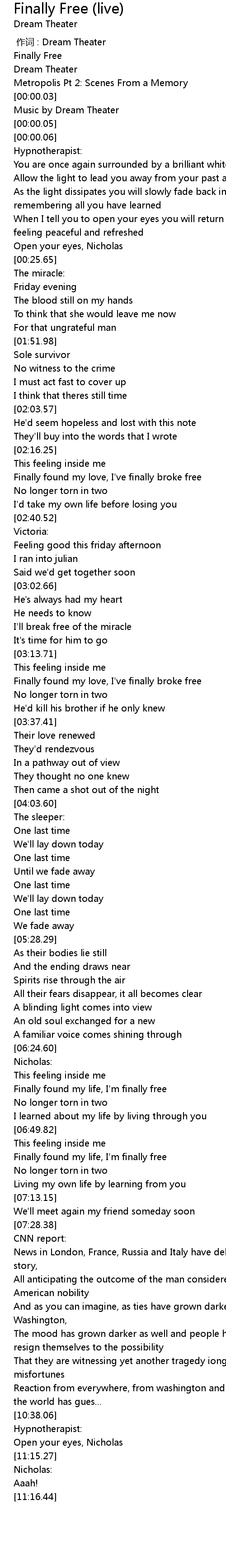 | [00:00.02] | Metropolis Pt 2: Scenes From a Memory |