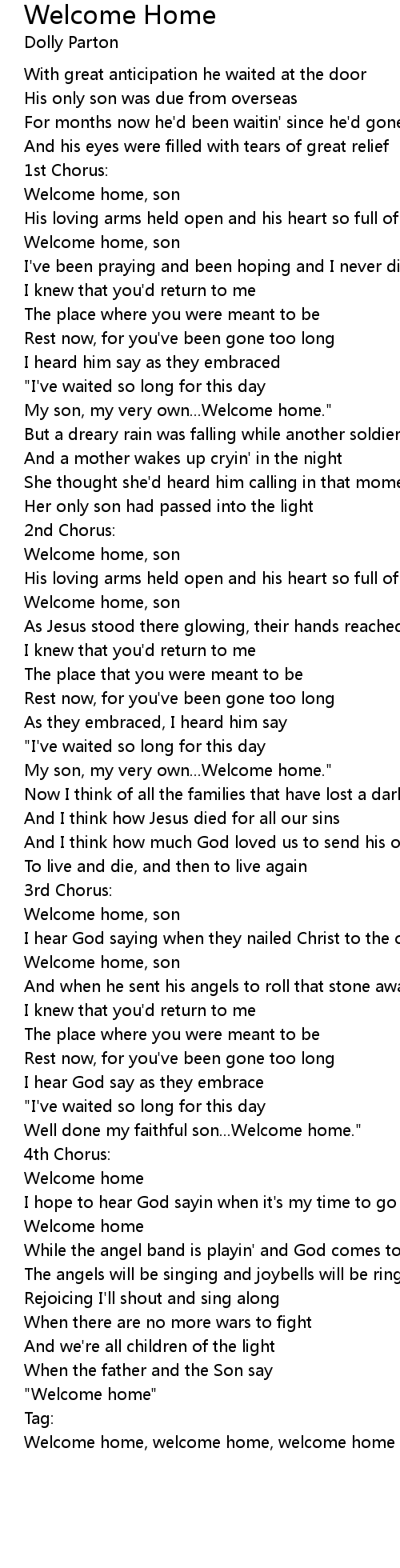 歌曲 Welcome Home