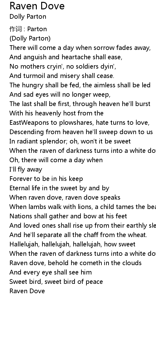| When the raven of darkness turns into a white dove of peace Raven dove | |