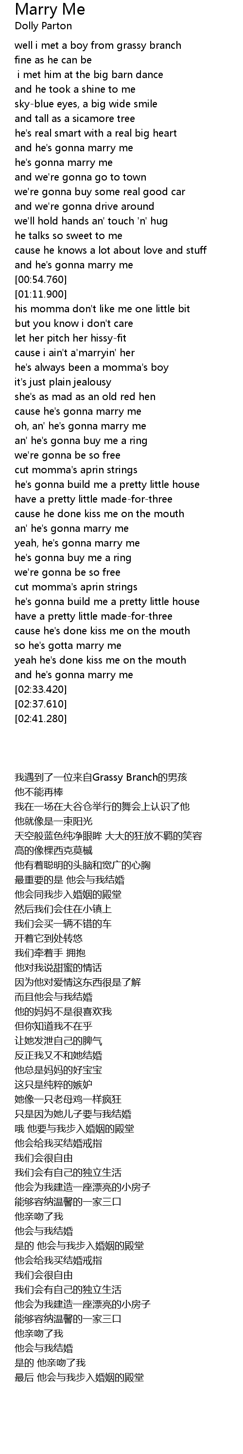 | [00:36.640] | he' s gonna marry me |