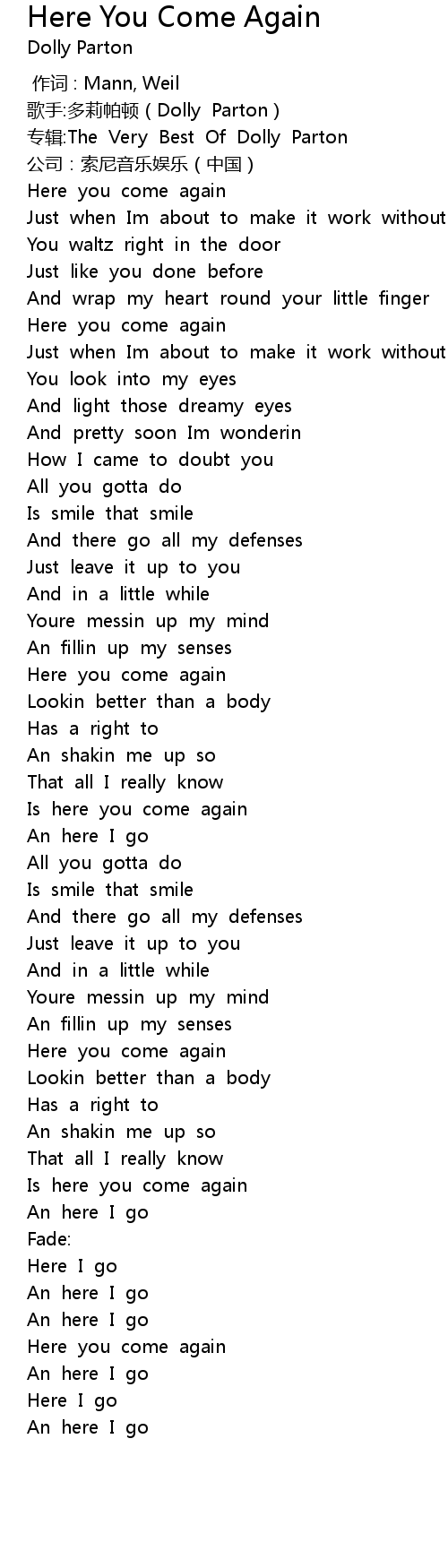 | [00:00.518] | gē shǒu: duō lì pà dùn Dolly Parton |