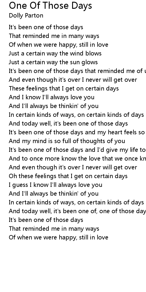 | It' s been one of those days and my heart feels so heavy | |
