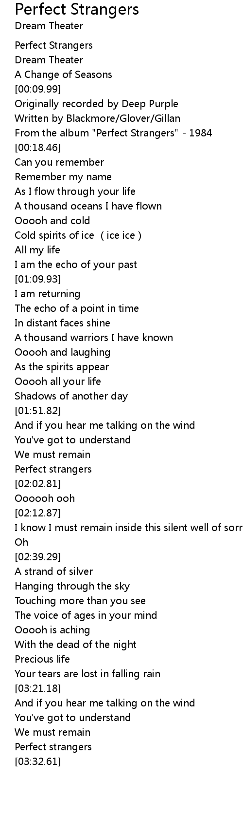| [01:59.91] | Perfect strangers |