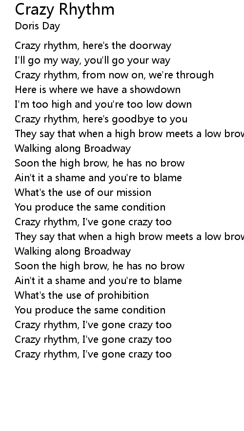 Crazy rhythm, here's the doorway |
