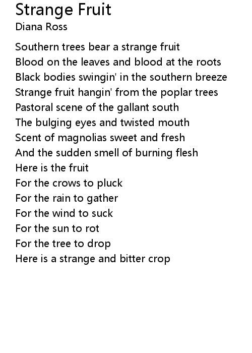 | Strange fruit hangin' from the poplar trees | |