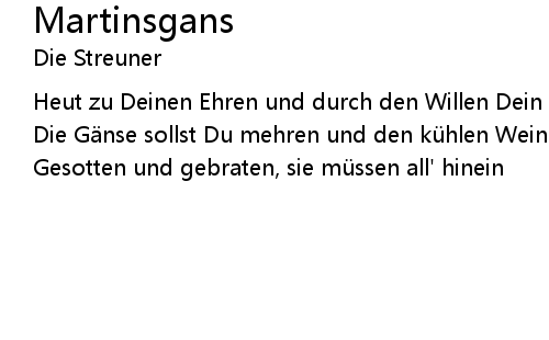 | Die Gänse sollst Du mehren und den kühlen Wein | |