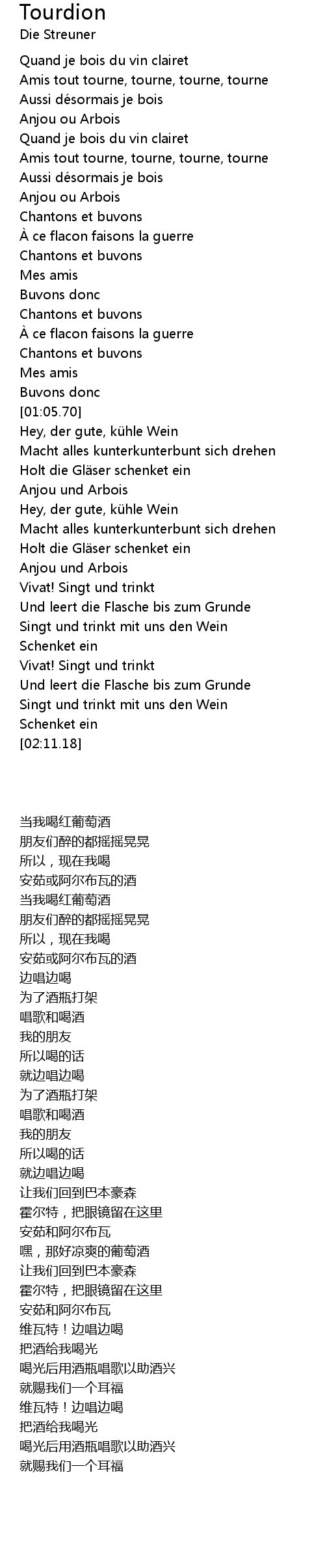 | [01:58.75] | Singt und trinkt mit uns den Wein |