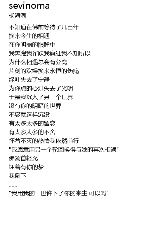 | [01:42.43] | "我愿意用另一个轮回换得与她的再次相遇" |