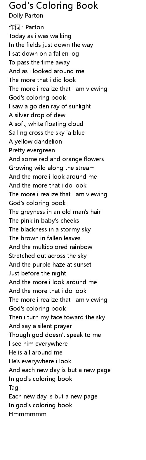 | 歌曲 | God's Coloring Book |