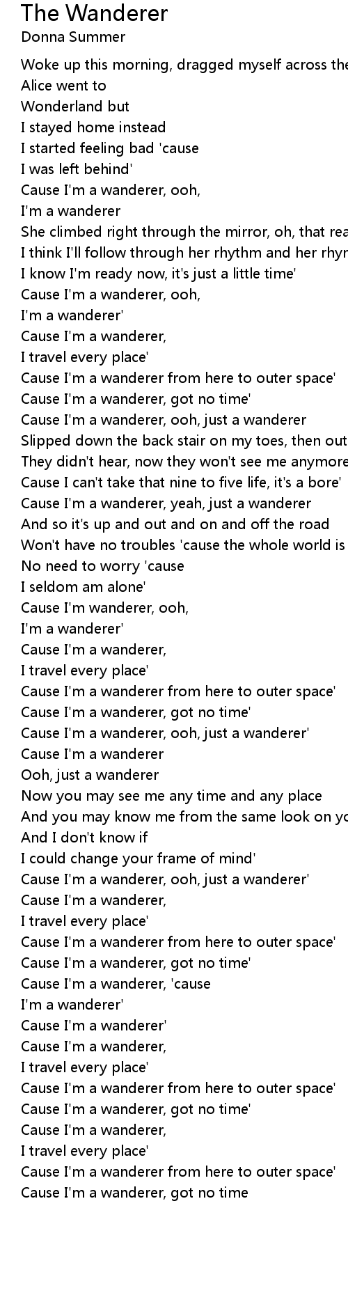 Cause I'm a wanderer, ooh, just a wanderer' |
