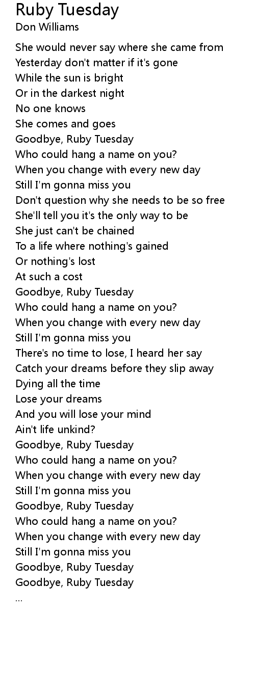 Goodbye, Ruby Tuesday |