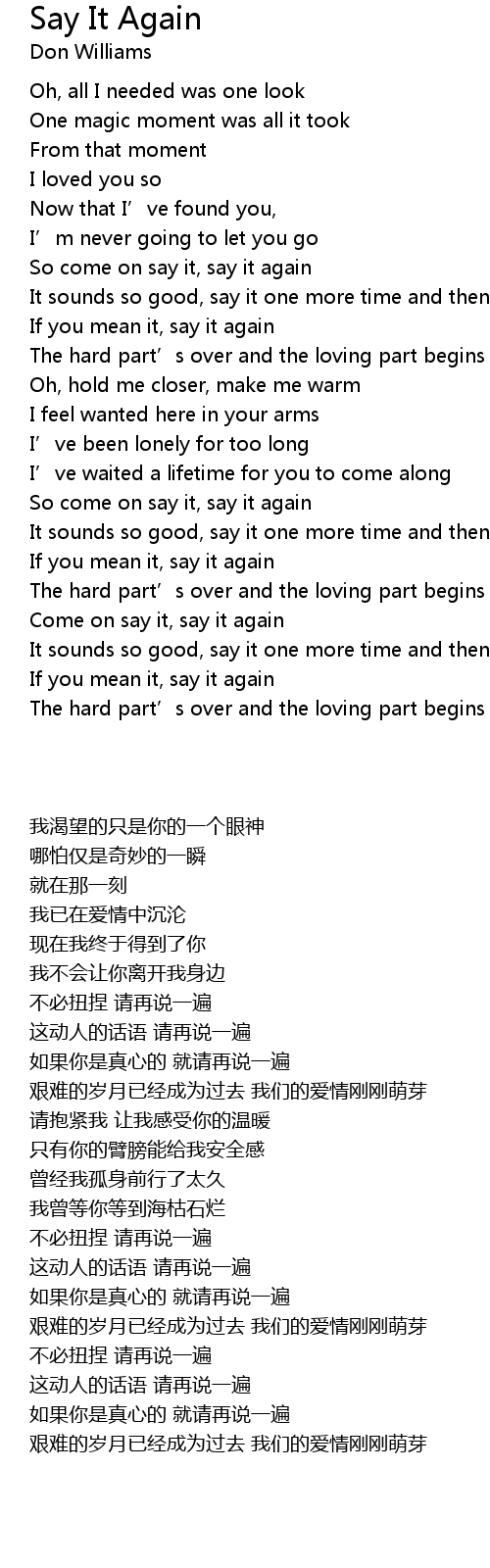 | [00:30.96] | So come on say it, say it again |
