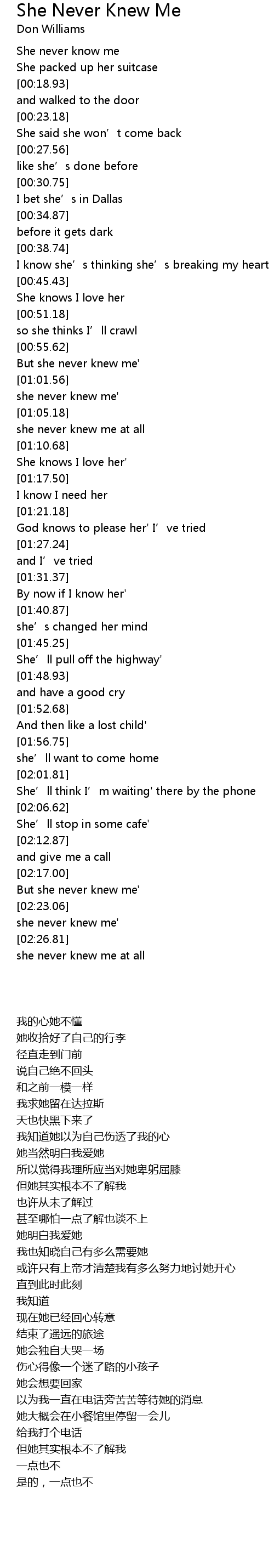 | [02:29.74] | she never knew me at all |