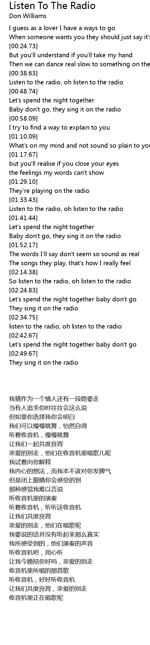 Listen to the radio, oh listen to the radio |