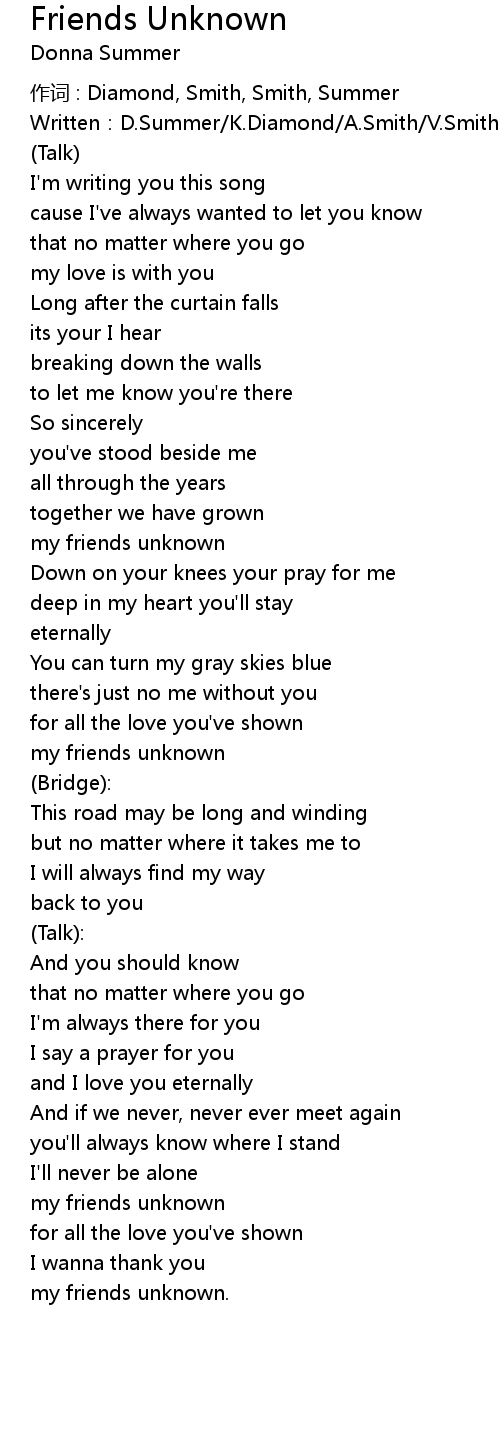 | 歌曲 | Friends Unknown |