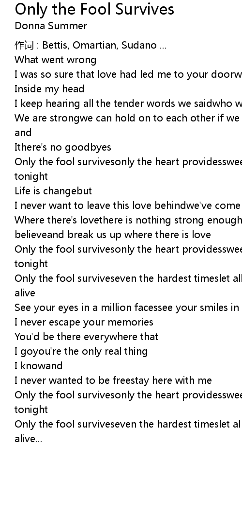 | Only the fool survivesonly the heart providessweet love and tendernesssave us tonight | |