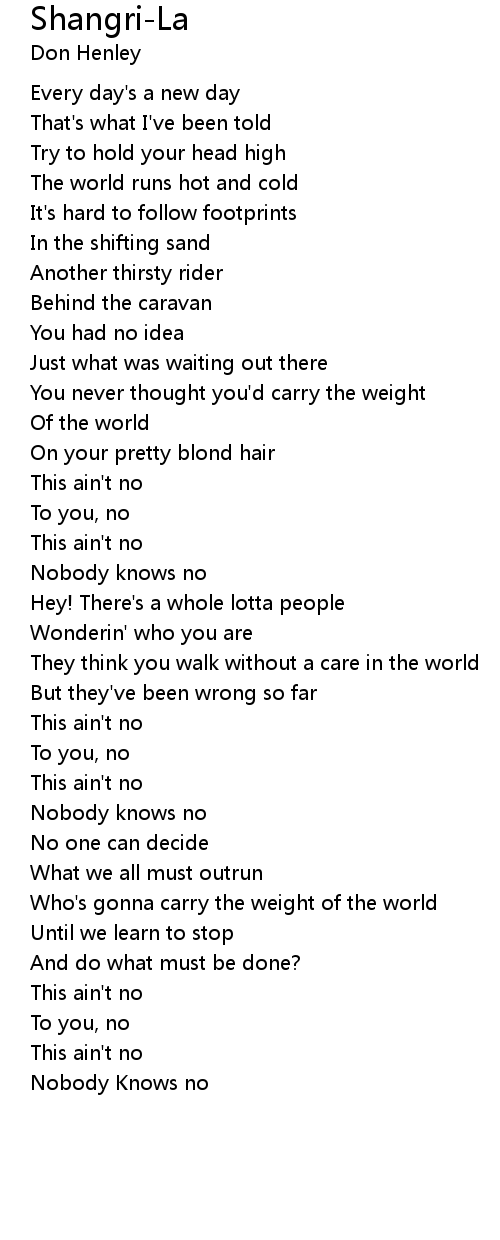 Who's gonna carry the weight of the world |
