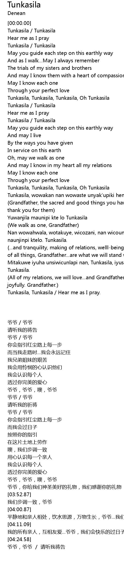 Tunkasila, Tunkasila, Tunkasila, Oh Tunkasila |