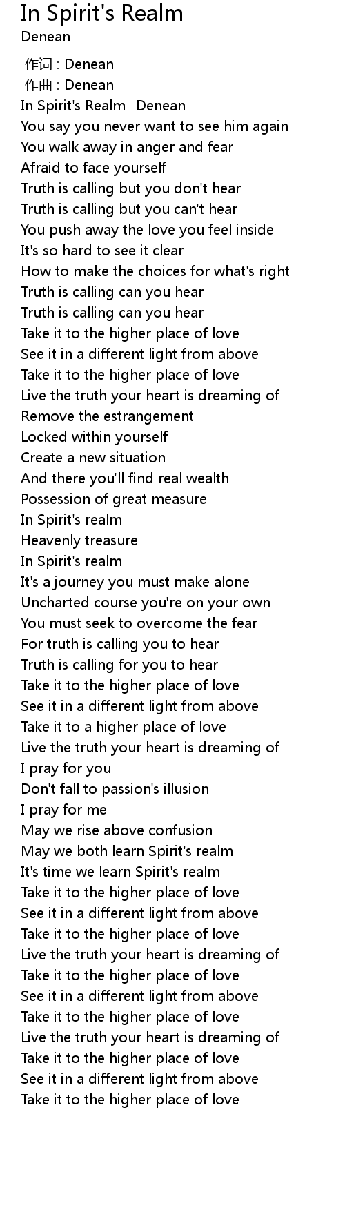 | [00:02.151] | In Spirit' s Realm Denean |