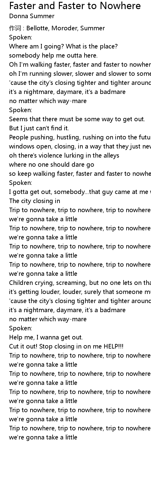 | 歌曲 | Faster and Faster to Nowhere |