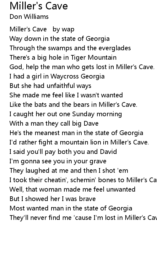 They'll never find me 'cause I'm lost in Miller's Cave... |