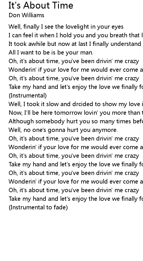 Oh, it's about time, you've been drivin' me crazy |