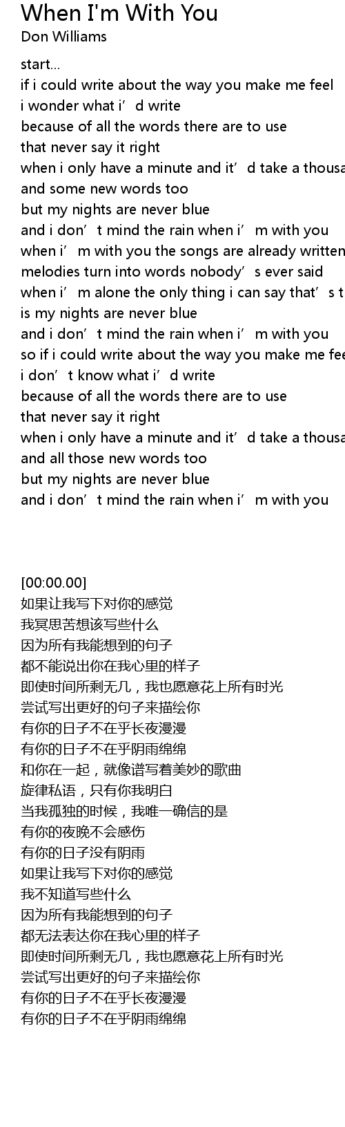 | [00:56.70] | when i' m with you the songs are already written |