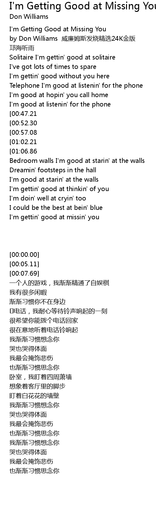 | [00:00.00] | I'm Getting Good at Missing You |