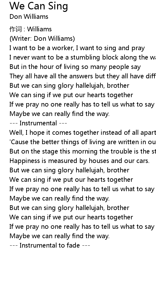 | 歌曲 | We Can Sing |