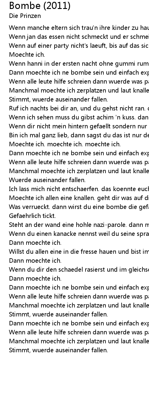 Dann moechte ich ne bombe sein und einfach explodieren.