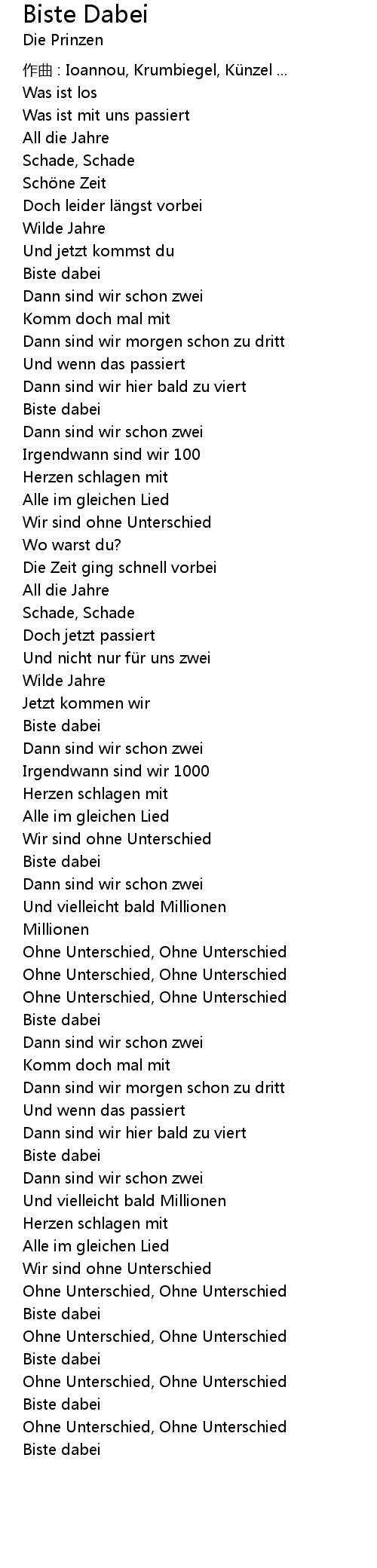| 歌曲 | Biste Dabei |