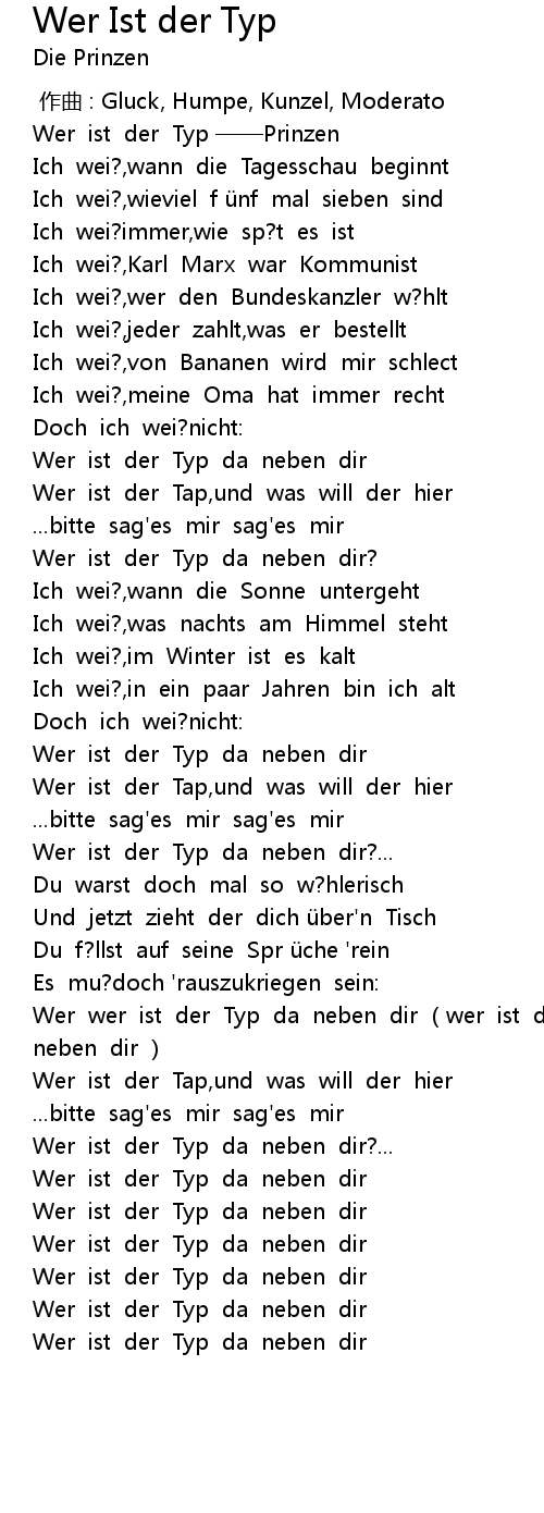 | [00:04.142] | Wer ist der Typ ——Prinzen |