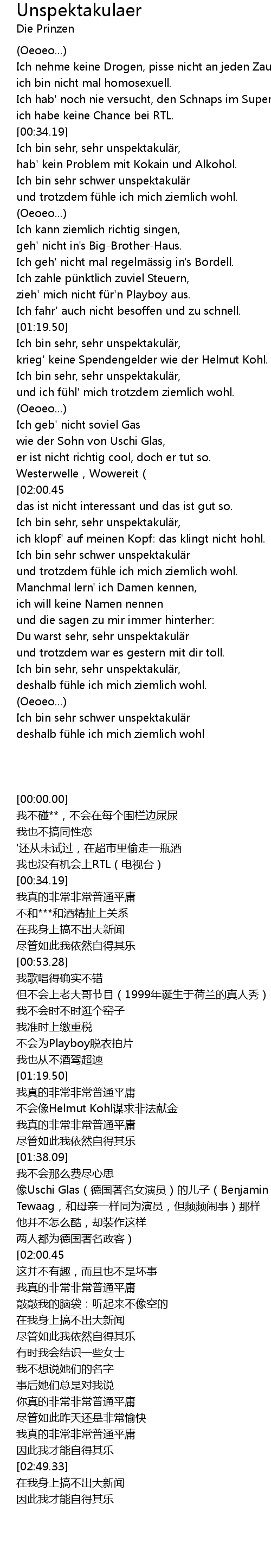 | [02:13.88] | Ich bin sehr schwer unspektakul r |